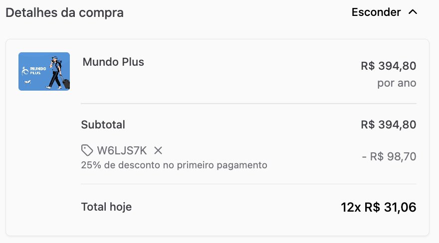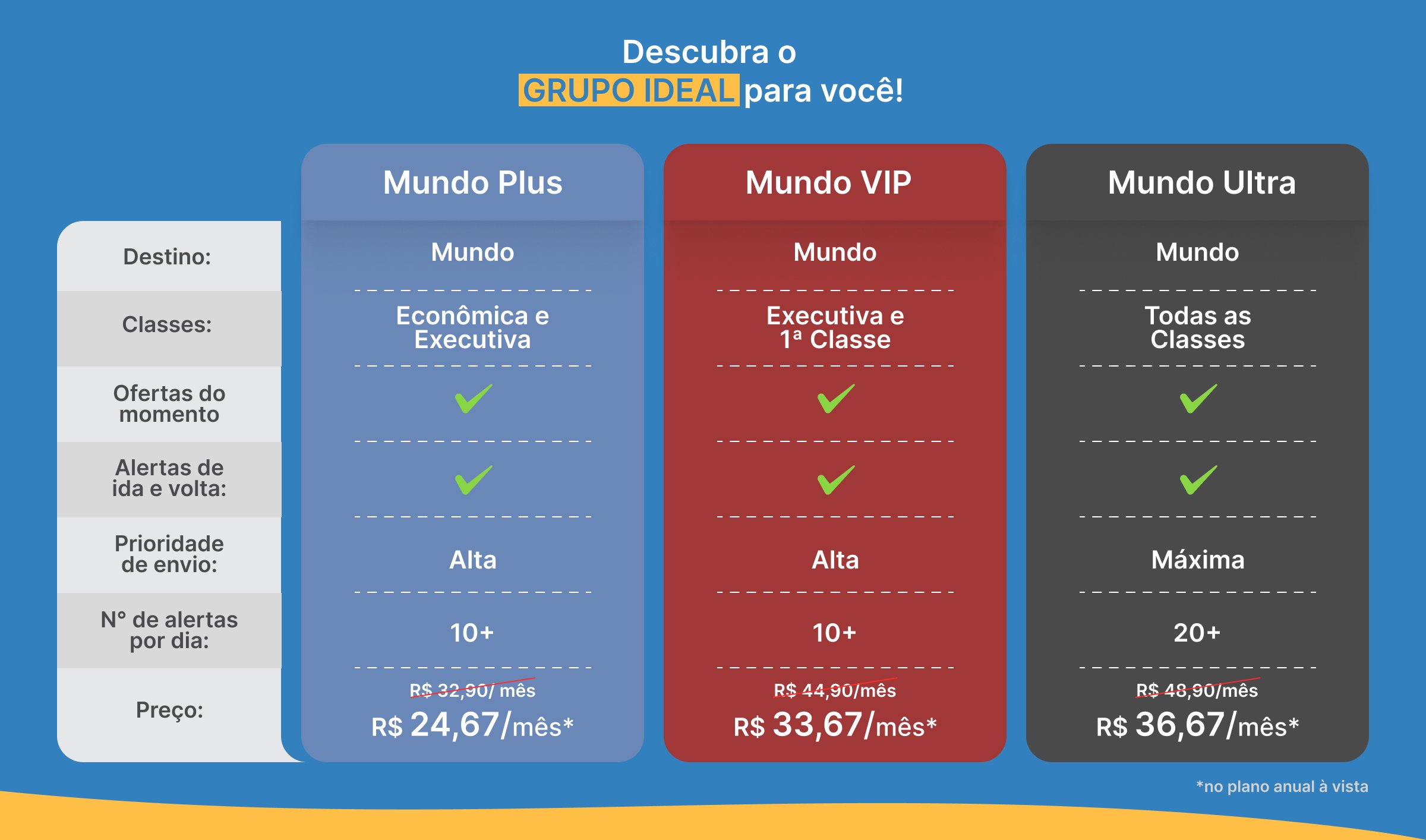 • A oferta é válida exclusivamente para o plano anual dos grupos Mundo Plus, Mundo VIP ou Mundo Ultra, com pagamento à vista ou parcelado;