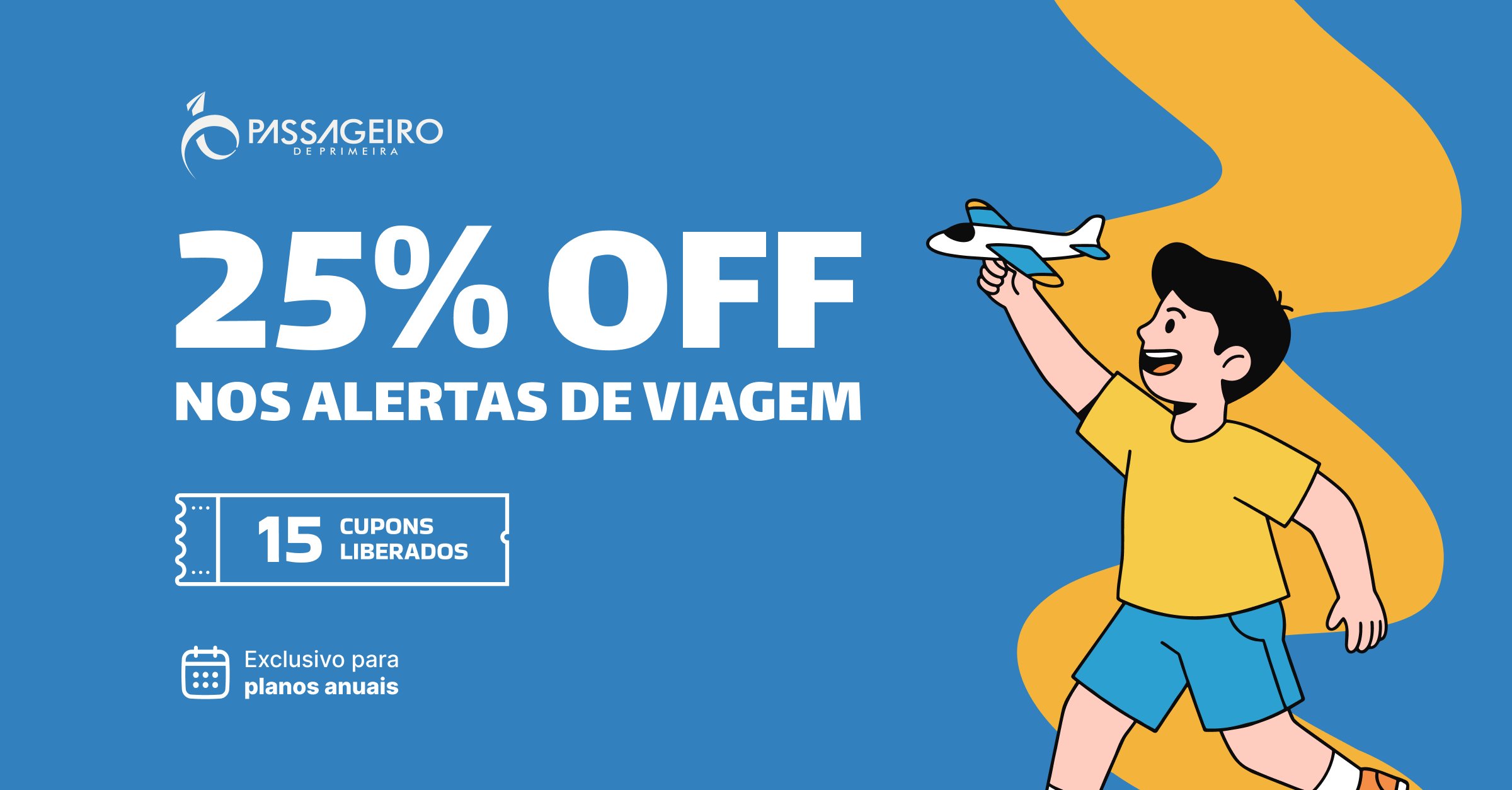 CORRE! Últimos 7 cupons com 25% OFF nos Alertas de Viagem do PP (Especial Dia das Crianças)