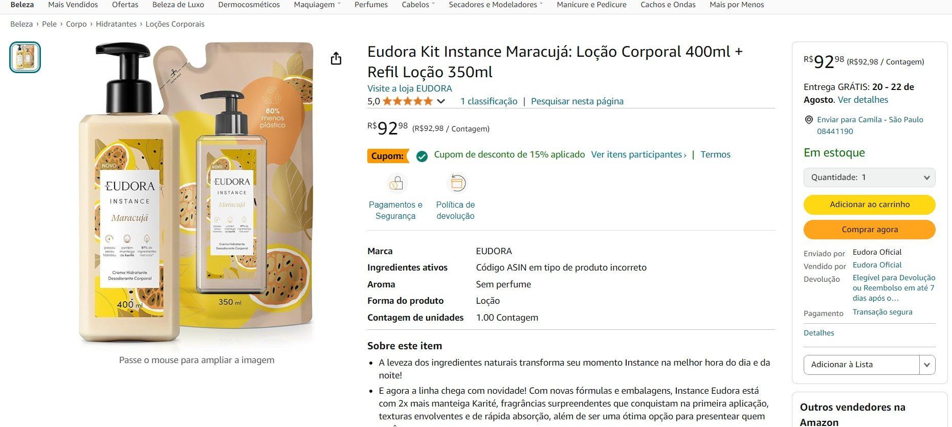 Economize 15% em em produtos selecionados Eudora – clique aqui