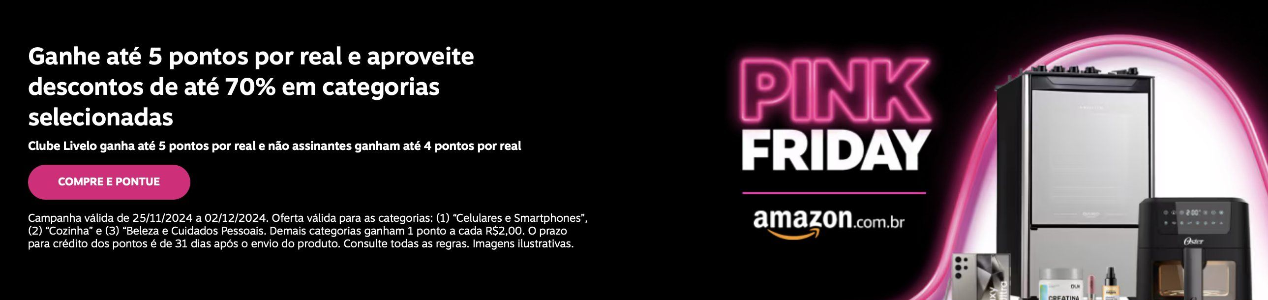 - 5 pontos por real gasto: assinantes Clube Livelo nas categorias “Celulares e Smartphones”, “Cozinha” e “Beleza e Cuidados Pessoais”;