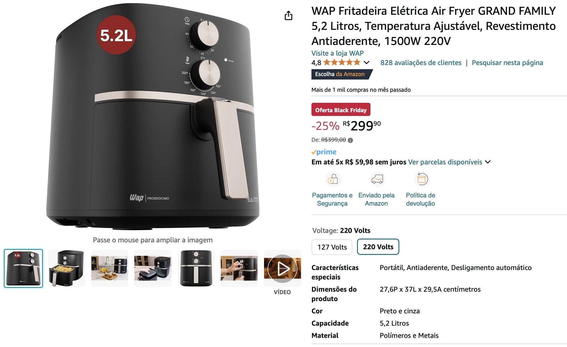 WAP Fritadeira Elétrica Air Fryer GRAND FAMILY 5,2 Litros