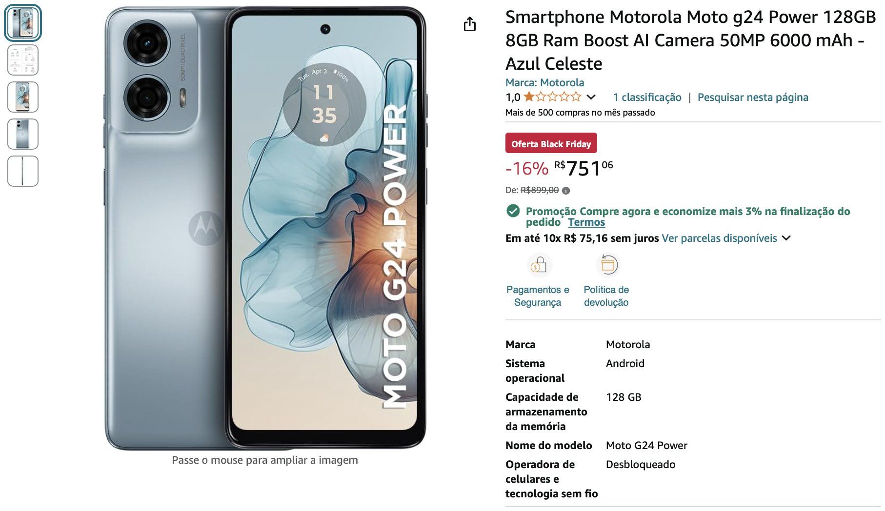 Smartphone Motorola Moto g24 Power 128GB 8GB