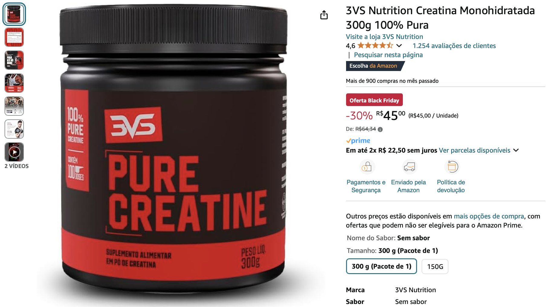 3VS Nutrition Creatina Monohidratada 300g 100% Pura