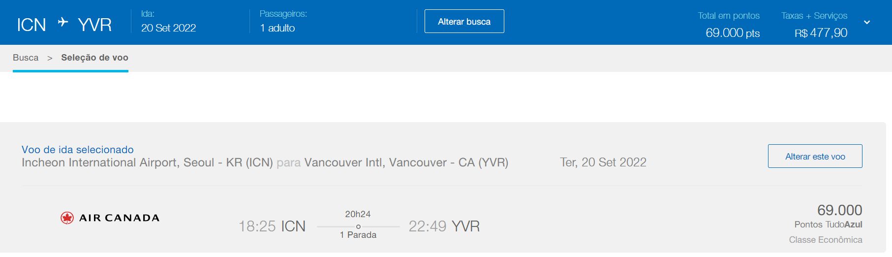 - Seul x Vancouver (Econômica)