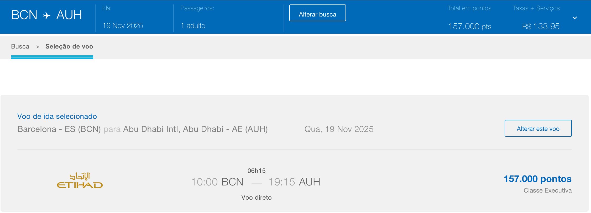 Barcelona (BCN) x Abu Dhabi (AUH) – 19 de novembro de 2025