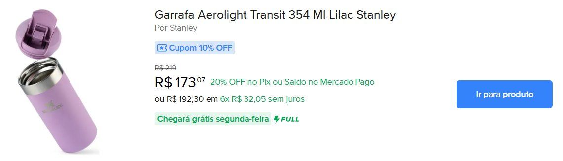 8/8 no Mercado Livre! Stanley com até 38% de desconto + cupom de até R$150 off
