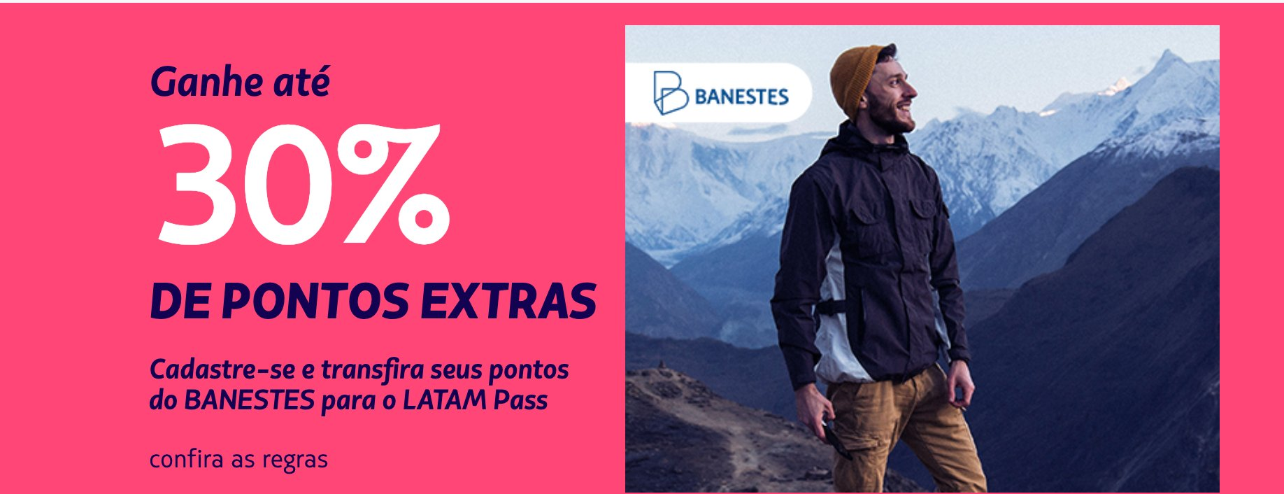 - São elegíveis as transferências de pontos do Banestes para o LATAM Pass até hoje (12);
