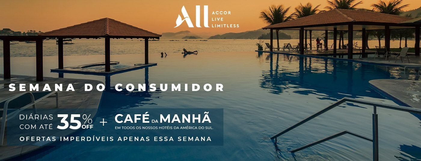 Começa hoje a Semana do Consumidor Accor! Até quarta-feira que vem (17) a rede está oferecendo diárias com 35% de desconto + café da manhã em todos os seus hotéis da América do Sul. É possível parcelar a hospedagem em até 6x sem juros.