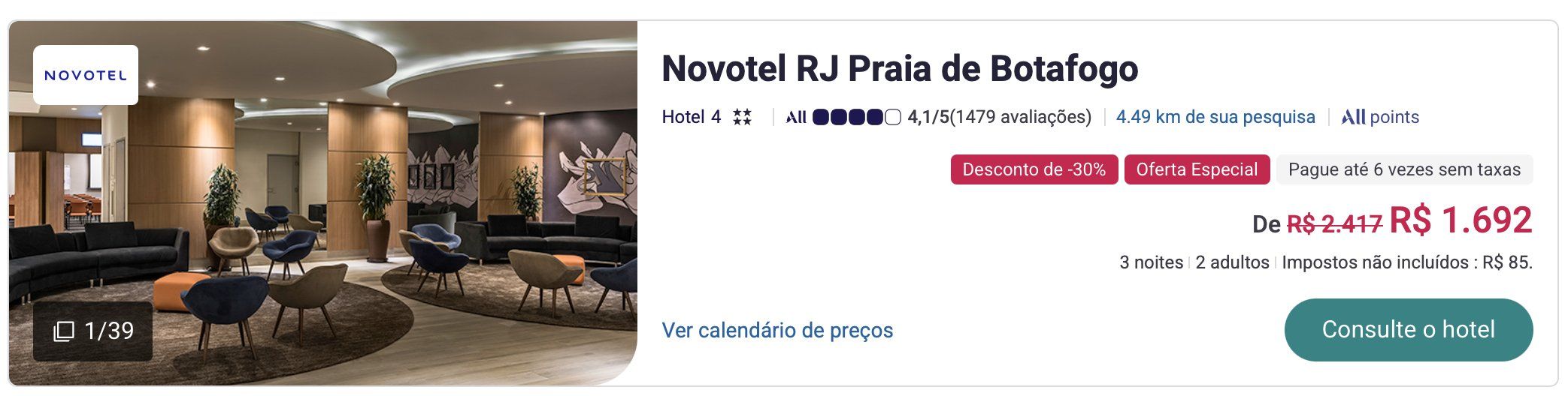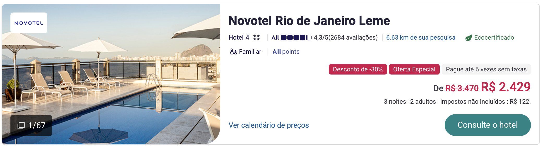 Realizamos uma simulação e conseguimos encontrar a tarifa promocional. Veja exemplos de hospedagem em diversos lugares do Rio de Janeiro: