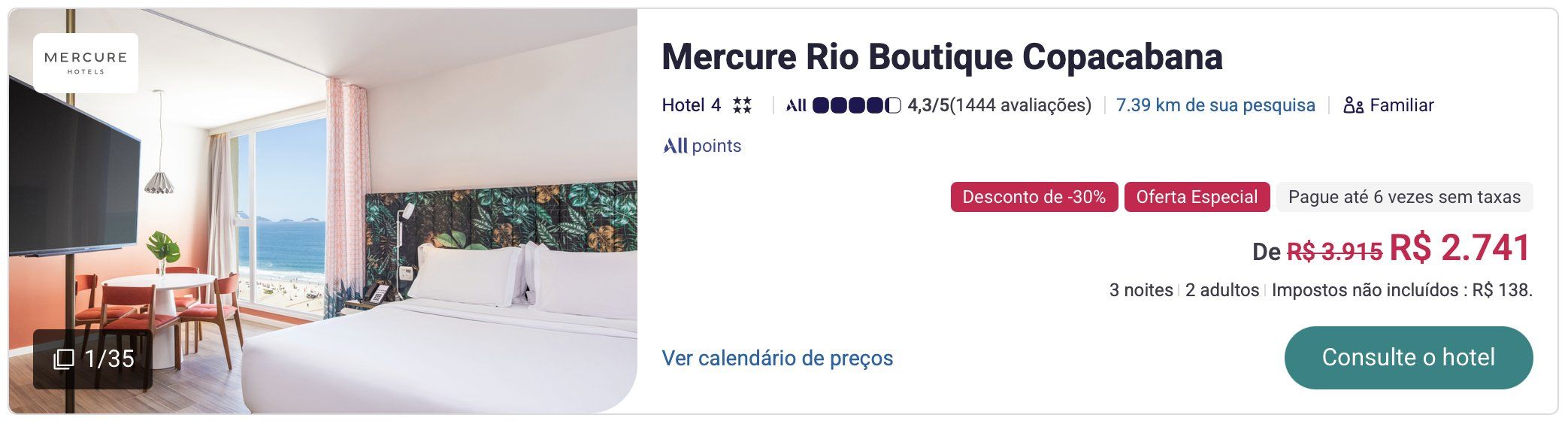 - Oferta válida para hotéis selecionados no Rio de Janeiro;