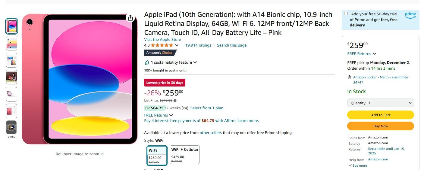 Veja agora exemplo de compra de um iPad vendido pelo site da Amazon dos EUA: