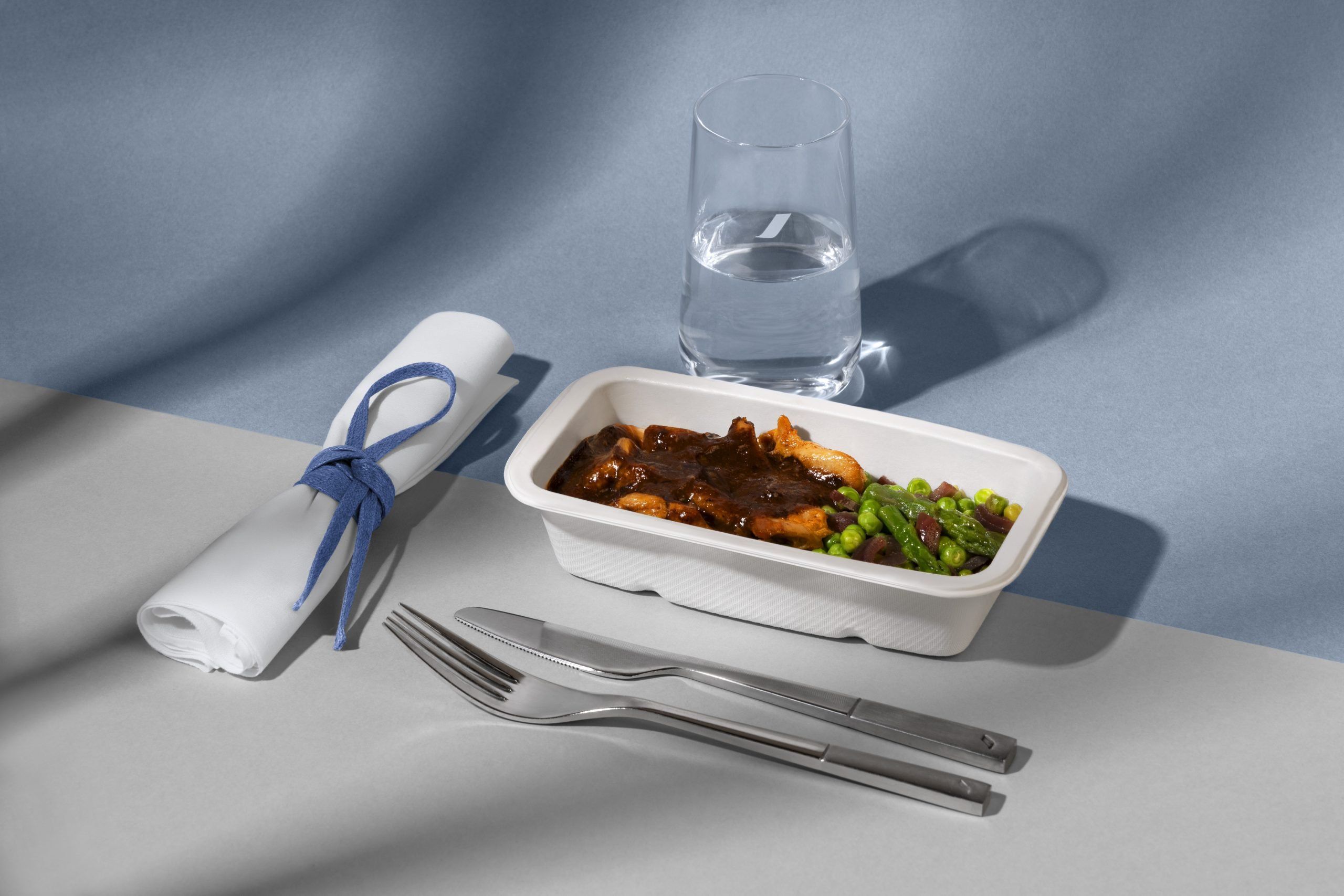 Preparados pelo chef, os passageiros agora podem escolher entre duas opções, sendo elas o frango ao molho de ameixas, que é servido com ervilhas, compota de cebola roxa e pontas de aspargos, ou o  macarrão Trofie assado com cogumelos porcini e aspargos. Ambos os pratos estão disponíveis nos voos que partem de Paris, Pointe à Pitre, Fort de France, Caiena e Reunião.