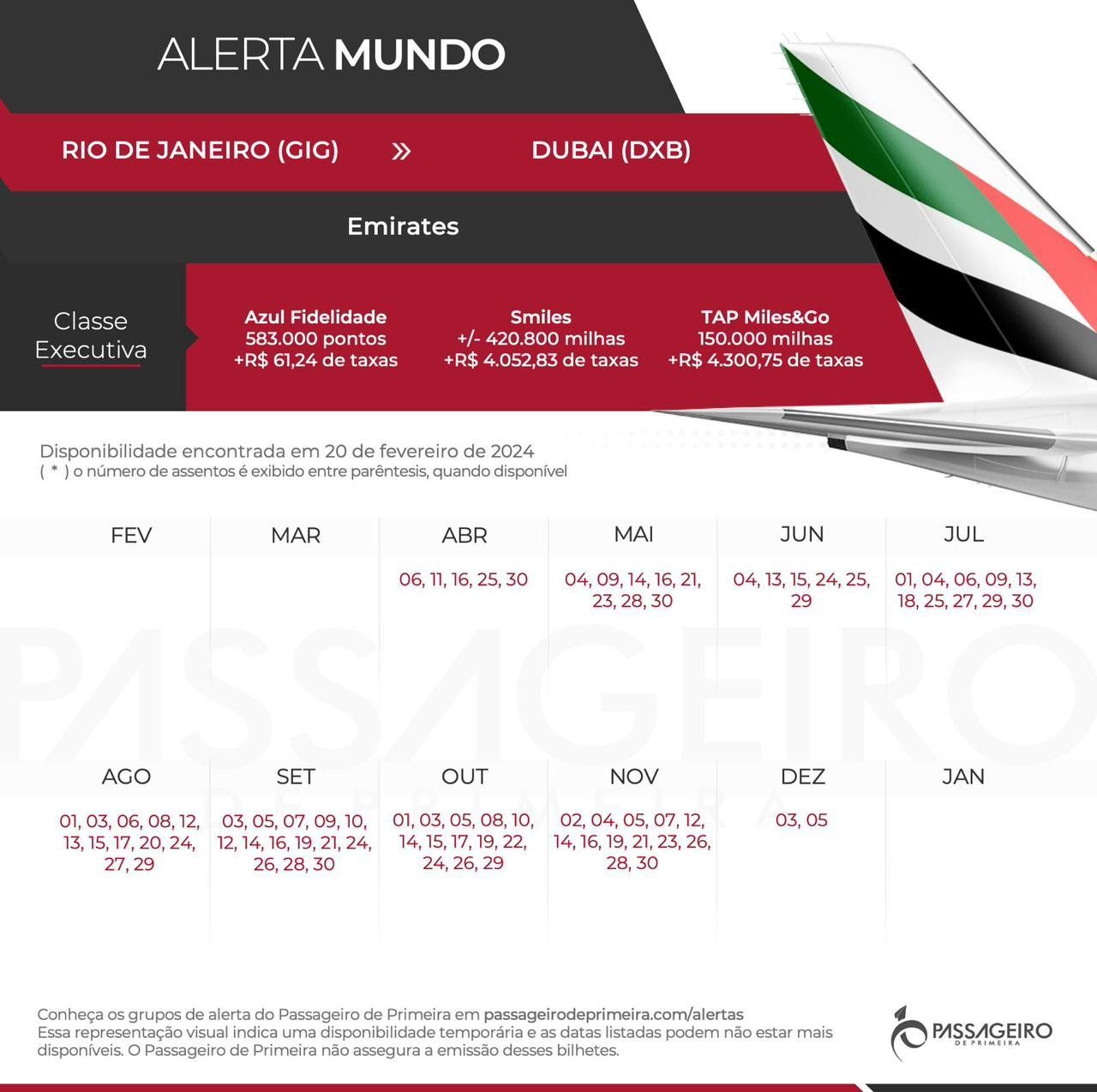 - Rota: Rio de Janeiro (GIG) x Dubai (DXB)