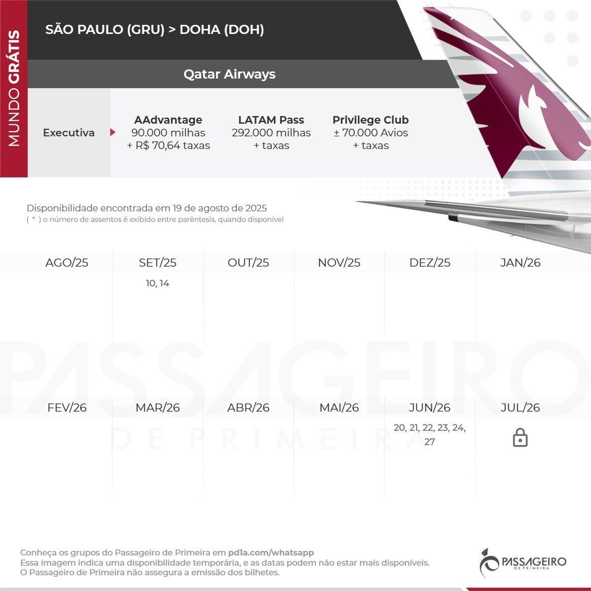 - Rota: São Paulo (GRU) x Doha (DOH)