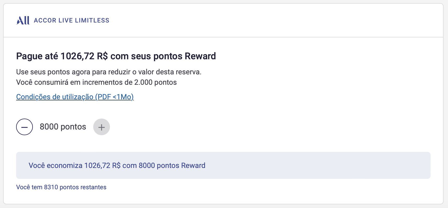 Na tarifa ALL Weekend, você também tem opção de utilizar seus pontos Reward. Veja, o exemplo dessa reserva em que foi possível pagar até R$ 1.026,72 com pontos: