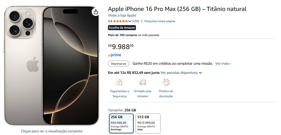 - iPhone 16 Pro Max 256 GB | total R$ 9.988,89 – compre aqui