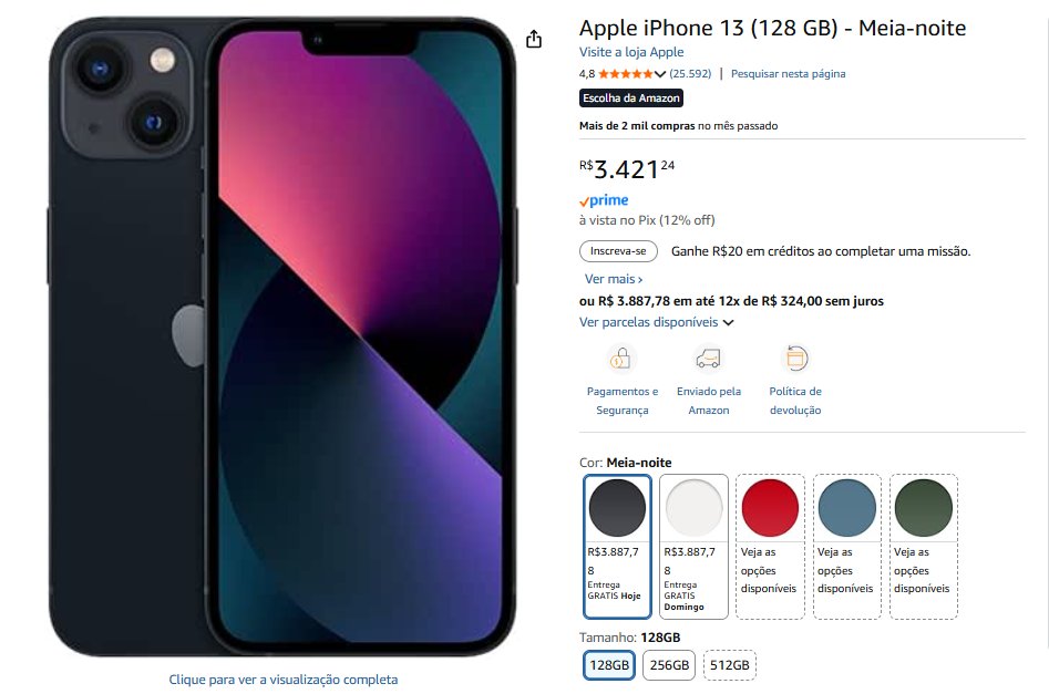 - iPhone 13 128GB| 12% desconto – total R$ 3.421,24 – compre aqui