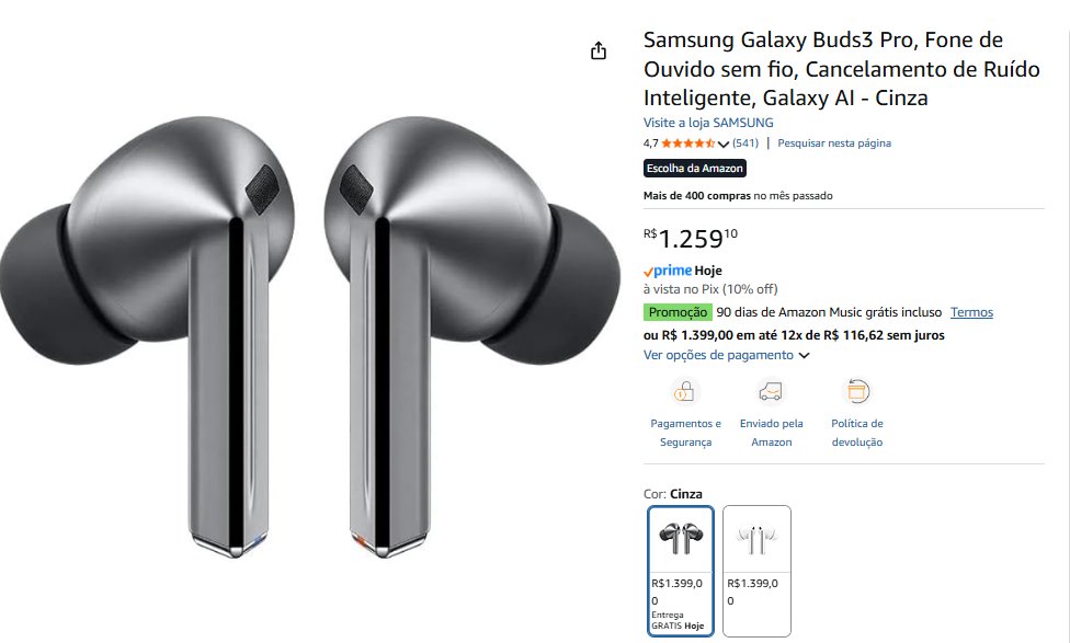 - Galaxy Buds3 Pro |10% de desconto| total R$ 1.259,10 – compre aqui
