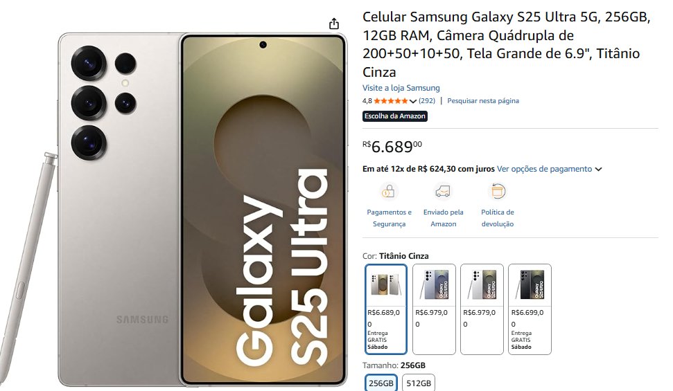 - Samsung Galaxy S25 Ultra | total R$ 6.689,00 – compre aqui