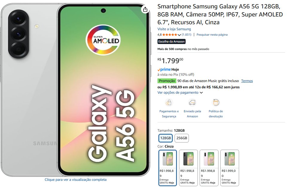 - Samsung Galaxy A56 | total R$ 1.799,00 – compre aqui