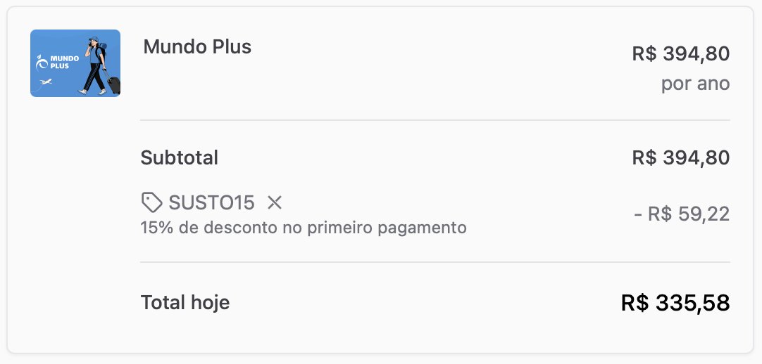 - Esta oferta concede 15% de desconto na assinatura dos grupos Mundo Plus, Mundo VIP ou Mundo Ultra;