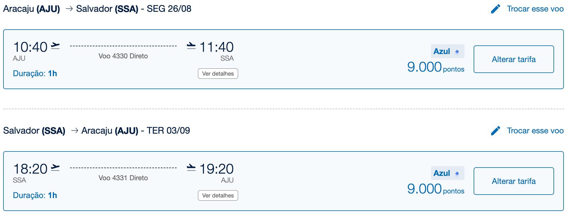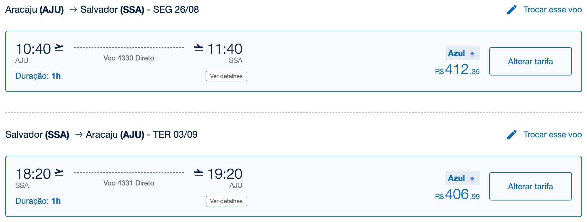 Salvador (SSA) x Aracaju (AJU)