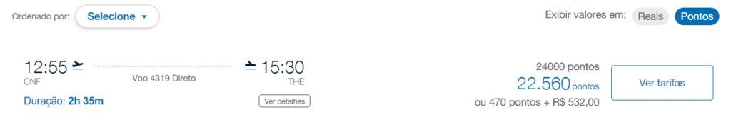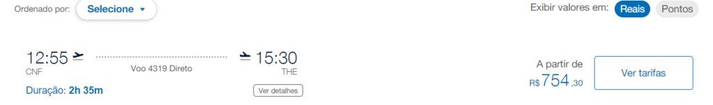 Os bilhetes para a rota entre Belo Horizonte (CNF) e Teresina (THE) já estão disponíveis para a compra no site da Azul e nas demais agências associadas. Em nossas pesquisas realizadas no dia 31 de outubro, encontramos passagens pagantes a R$ 754,30 ou 22.560 pontos + taxas o trecho, com valores semelhantes para o trecho no sentido inverso. Confira: