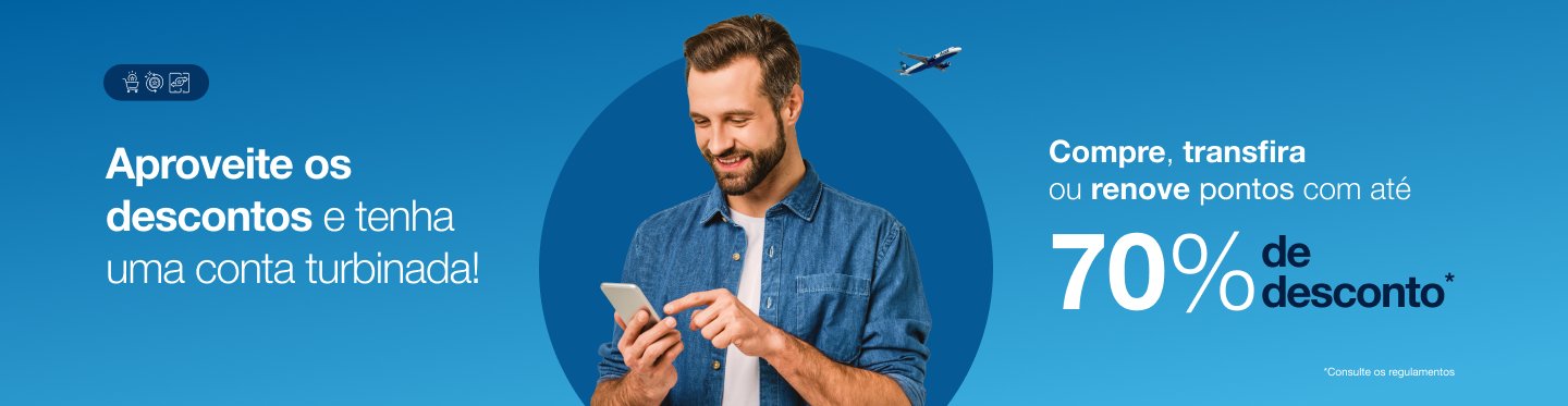 O Azul Fidelidade está oferecendo até 70% de desconto na compra de pontos. Na oferta, assinantes do Clube Azul que forem também portadores do cartão Azul Itáu podem obter um CPM [custo para cada mil pontos] de R$ 18,90. A promoção é válida até domingo (26).