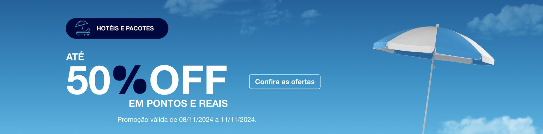 - O cupom de 50% aplica-se somente para pacotes de viagens disponíveis na página da oferta;
