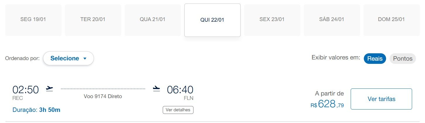 Confira abaixo um exemplo de disponibilidade da nova rota: