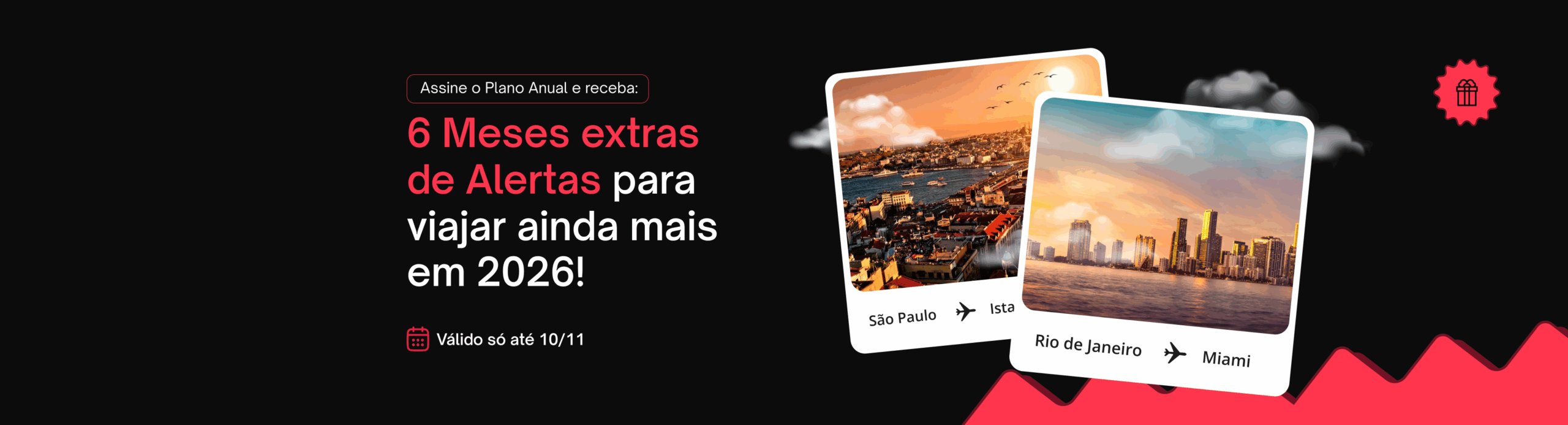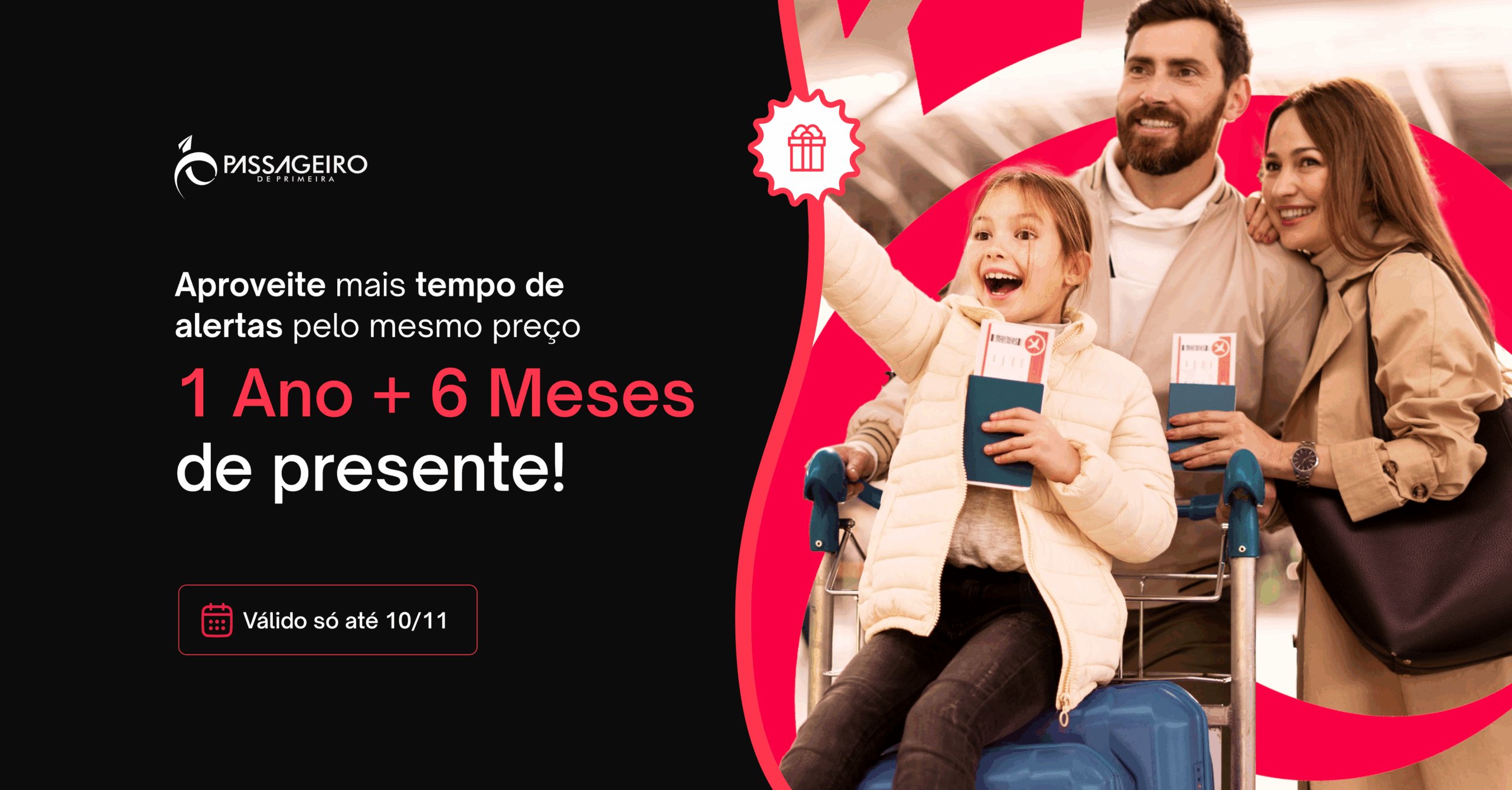 🔥 A Melhor Promoção do Ano voltou! A Black November do PP começou e quem assinar um plano anual dos nossos Alertas de Viagem ganha 6 Meses Grátis por nossa conta! E meio ano extra pra receber as melhores oportunidades de viagem direto no WhatsApp. A campanha é exclusiva para o anual e por tempo limitado. Garanta o seu grupo neste link e não perca essa chance!