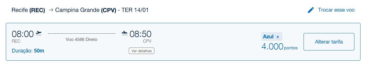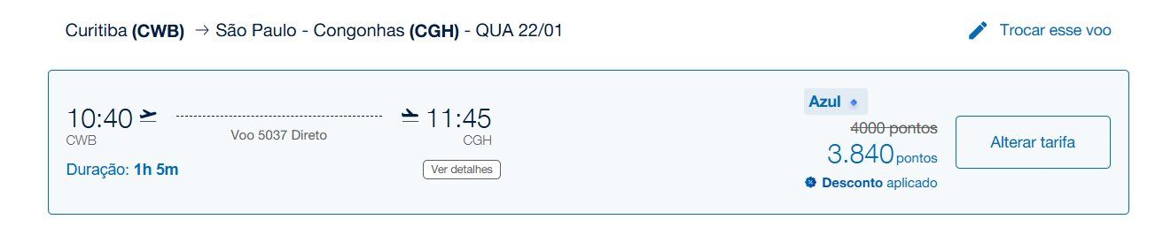 Excelente oportunidade! Para quem ingressar no programa de fidelidade, ao obter 5.000 pontos gratuitos, será possível emitir alguns trechos nacionais, como os mostrados no exemplo, pagando apenas as taxas de embarque.