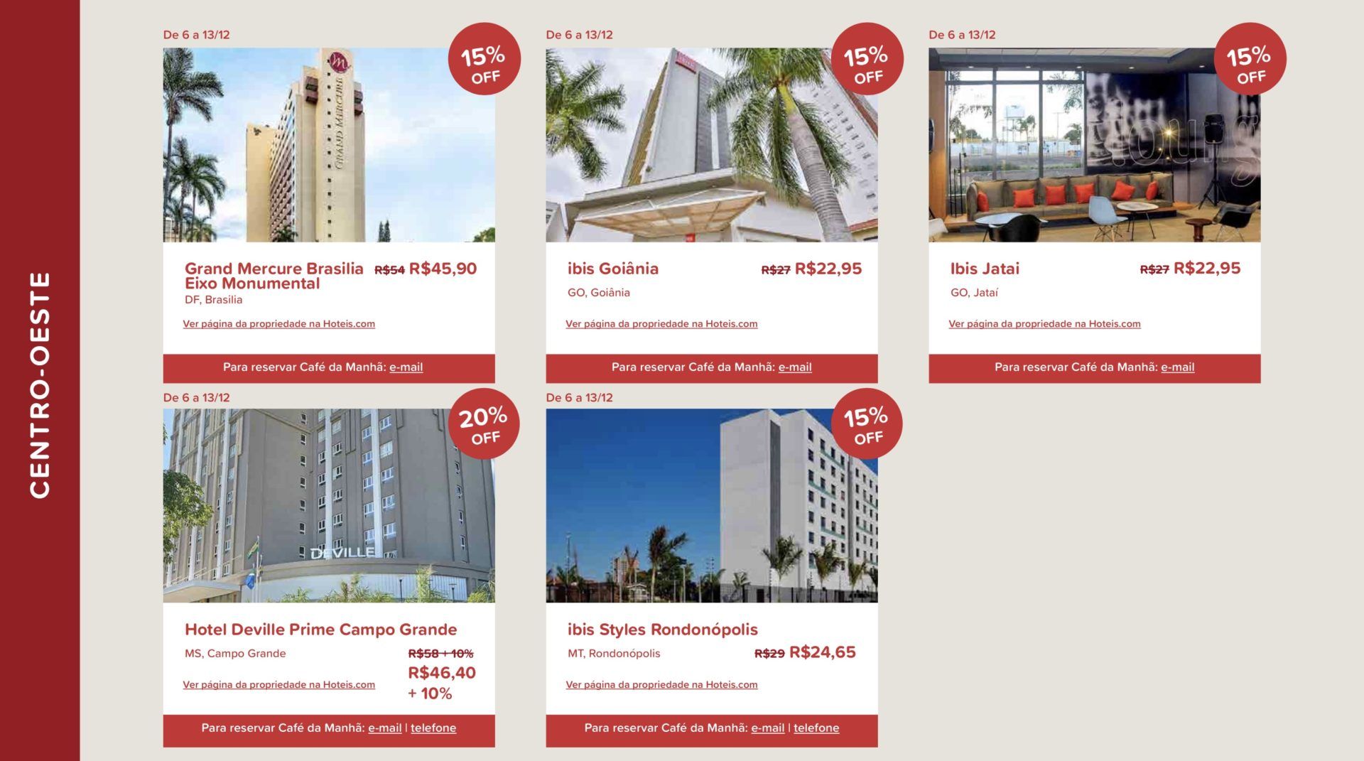 Saudades de um café da manhã de hotel? Então pode ir se preparando porque a Hoteis.com acaba de iniciar a “Semana do Café da Manhã”, com mais de 250 propriedades em todo o Brasil, em uma ação promocional que acontecerá de 06 a 13 de dezembro com preços exclusivos e descontos de até 25% abaixo do valor praticado pelos estabelecimentos participantes.