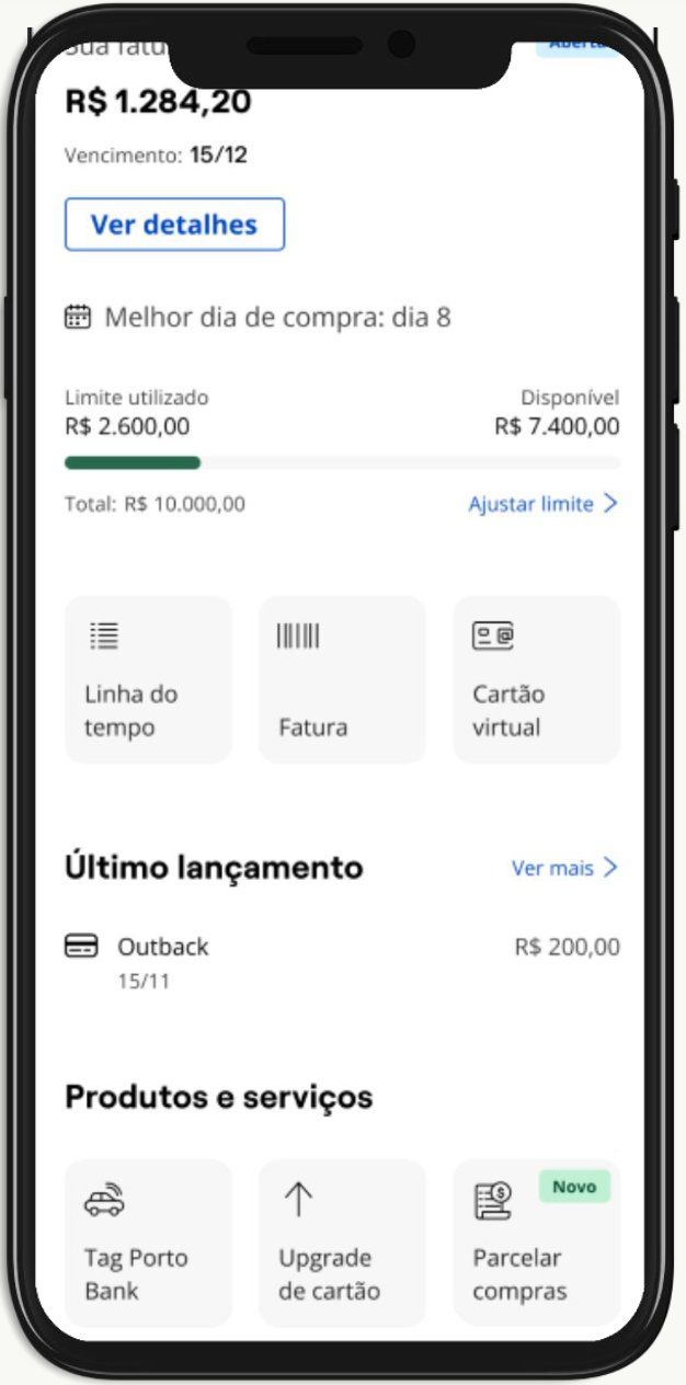 - Na página inicial, selecione o Cartão de Crédito Porto Bank ;
