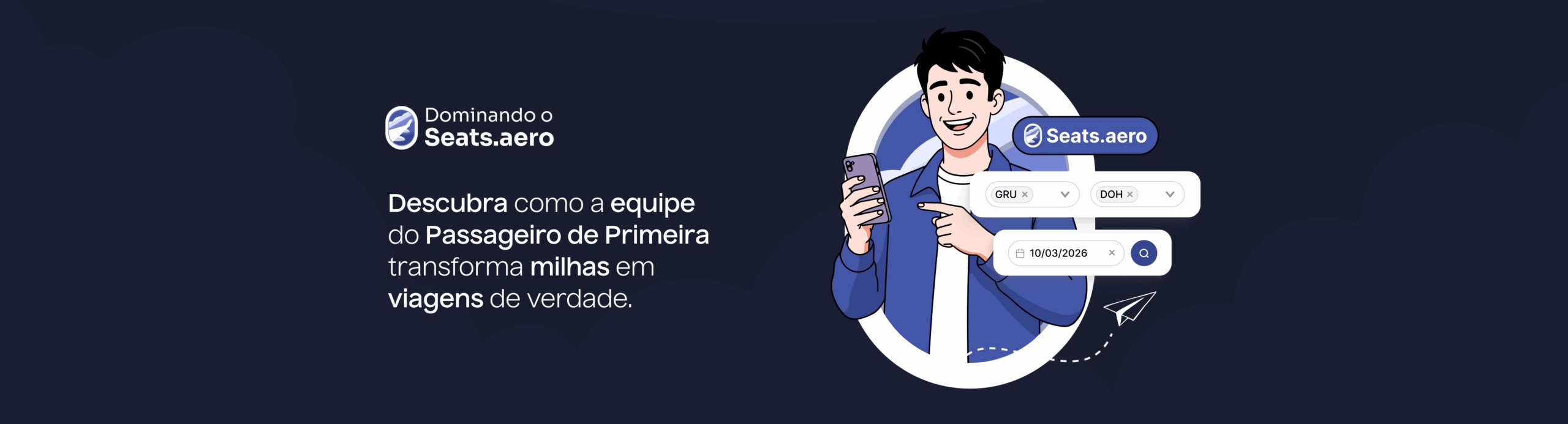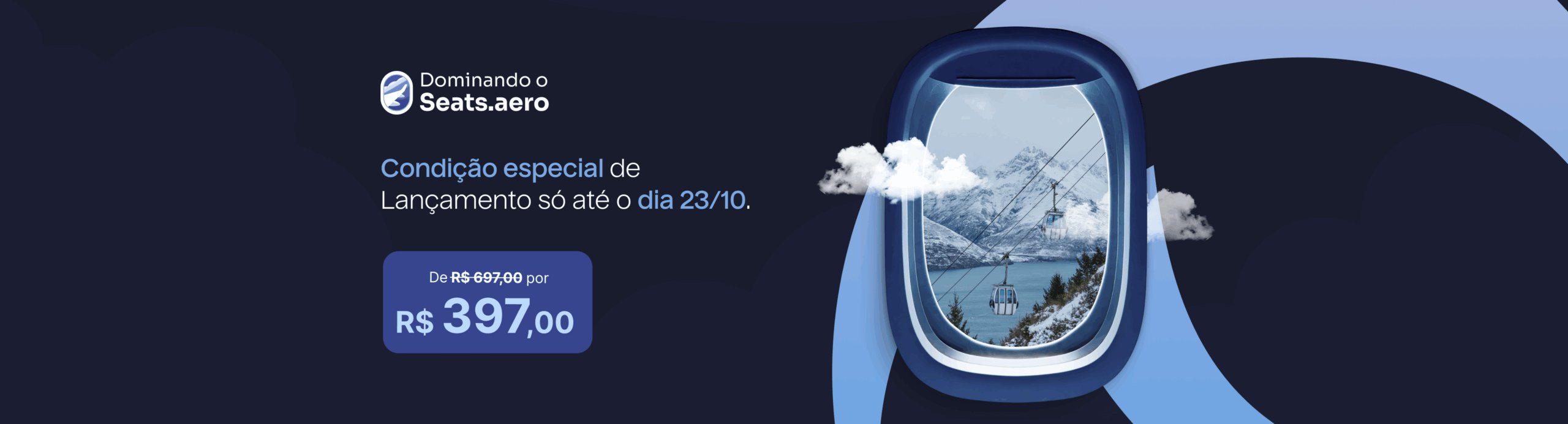 O Dominando o Seats.aero já decolou! 🚀 Chegou a hora de descobrir como usar a ferramenta de busca mais poderosa do mundo das milhas para transformar pontos em passagens de verdade. Para celebrar o lançamento, você garante até 50% OFF na inscrição e ainda recebe um desconto exclusivo no Seats.aero Pro, disponível apenas para as 300 primeiras pessoas. Clique aqui e aprenda a dominar o Seats.aero de verdade – condição válida até amanhã (23).