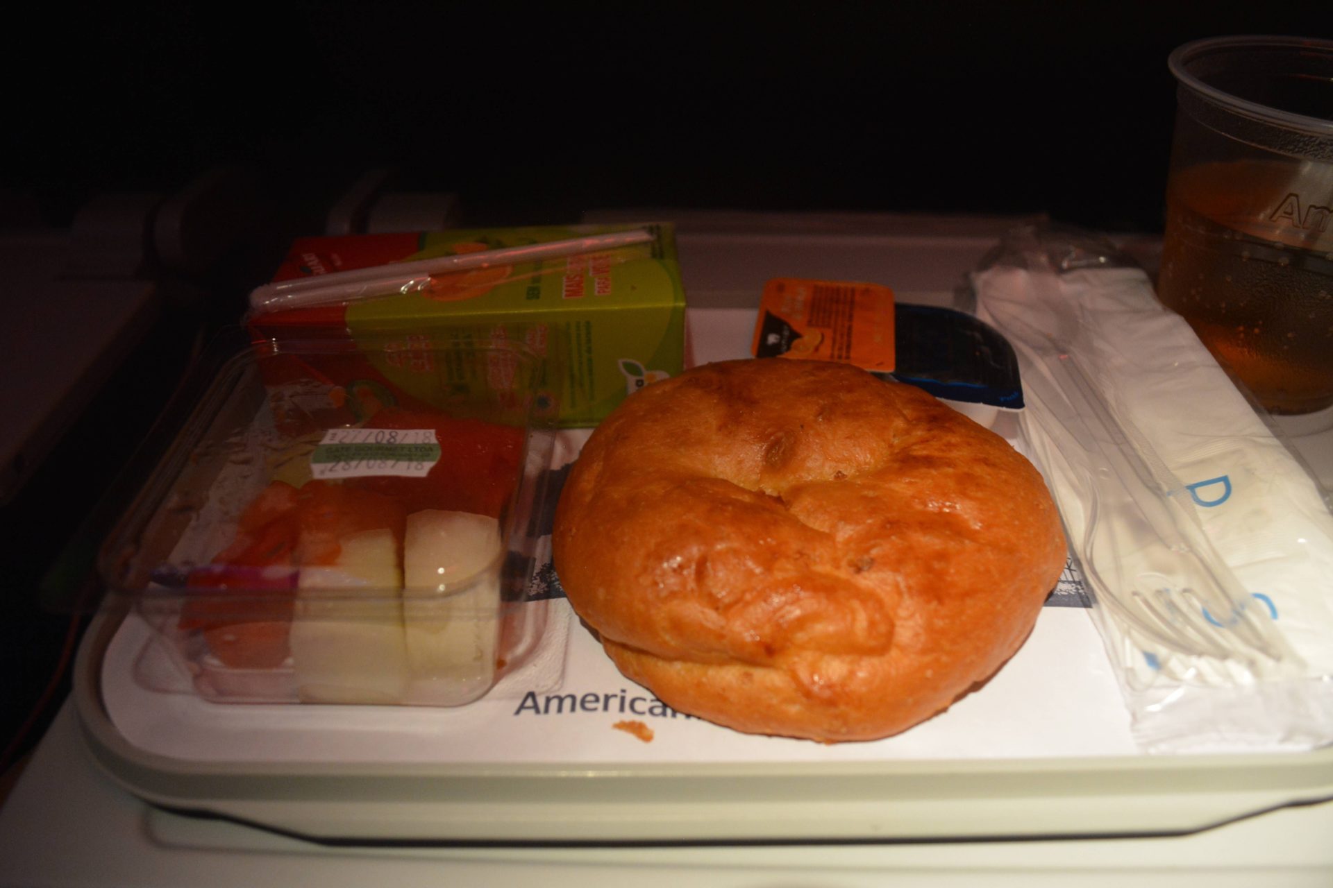 Foi tudo bem tranquilo durante este trajeto, nada demais do que se espera de uma classe econômica (isso é bom ou ruim?). Entretanto, me decepcionei bastante com a comida, até porque me lembrava de uma outra experiência agradável com a American em que as refeições estavam bem boas e foram inclusive servidas com talheres de metal e copo de vidro. Mas esse não foi o caso dessa vez. Nesse quesito eu vou comparar direto com a Latam, já que as duas empresas são membros da One World. As refeições reformuladas da Latam para a classe econômica (que você pode ver com mais detalhes no meu último post) se destacam bastante no mercado, onde o senso comum das companhias aéreas é uma refeição bem “mais ou menos”, servida em uma bandeja que mais parece uma caixinha de óculos.