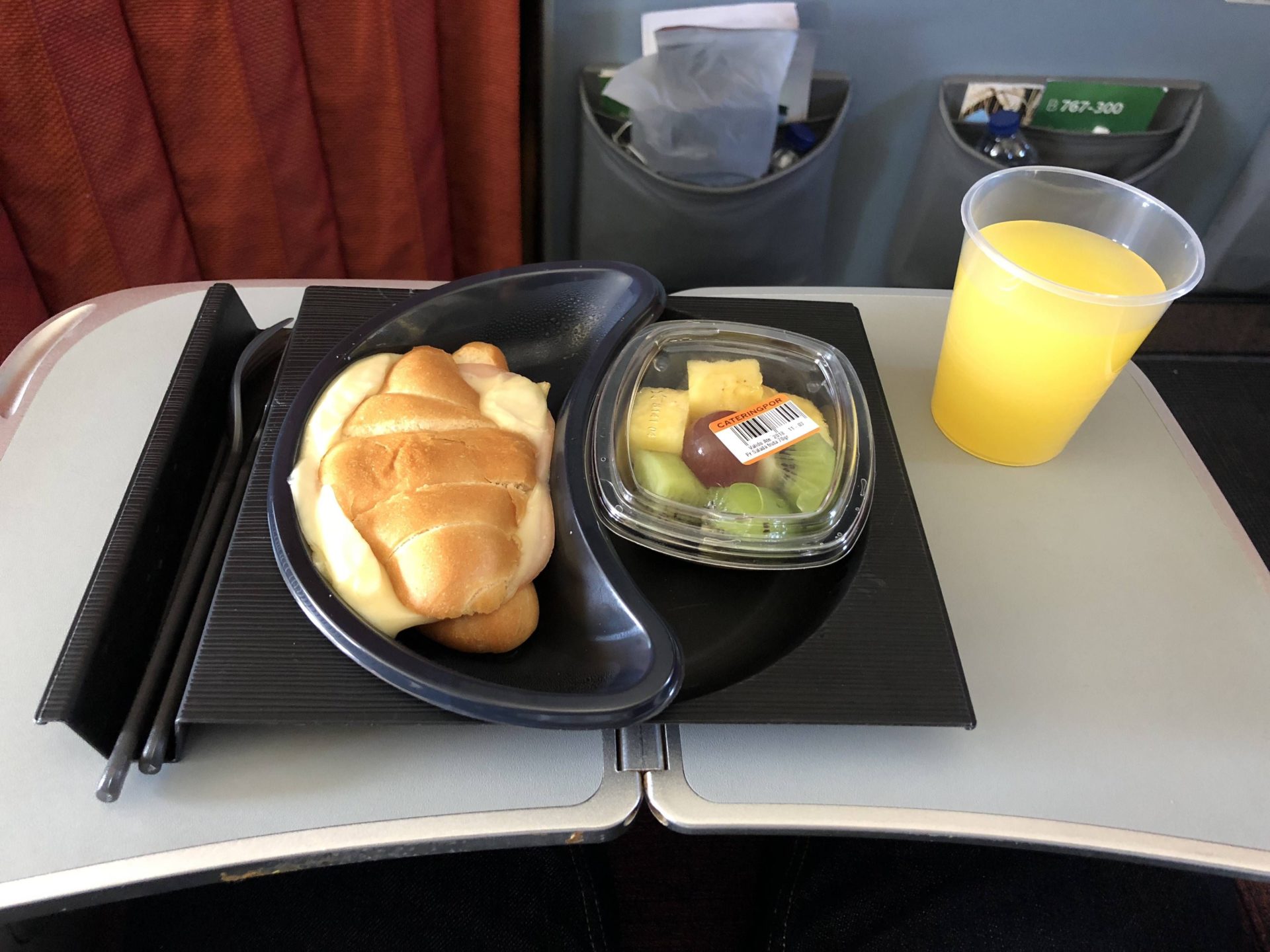 - Segundo que por ser um voo diurno, o serviço de bordo incluiu café da manhã e almoço, então poderia avaliar uma refeição diferente do jantar servidos nos voos noturnos.