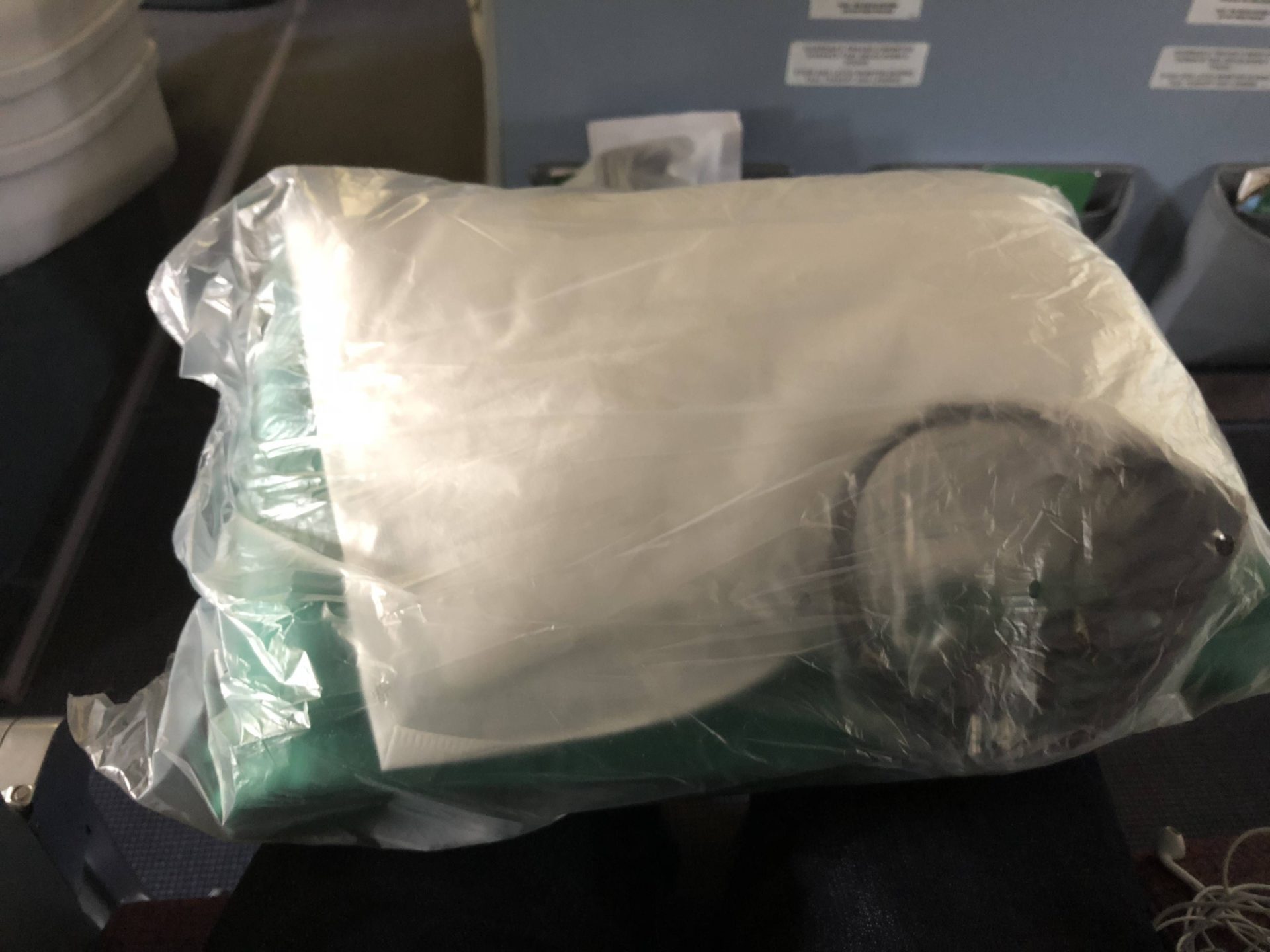 Como sempre, a LATAM disponibiliza um kit com aqueles “mini travesseiros”, cobertor e um fone de ouvido.