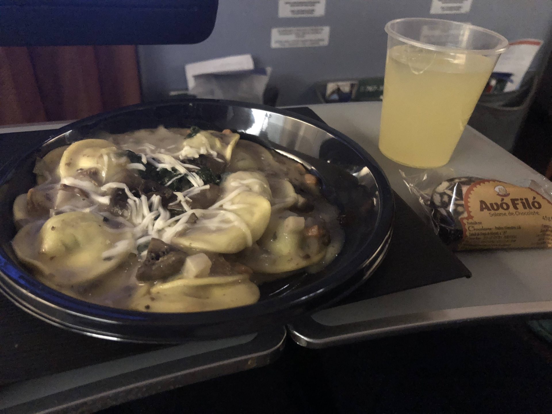 Mas esse Ravióli servido no almoço estava muito bom, super saboroso. Acho que a LATAM deveria trocar o Ravióli do jantar por esse do almoço. Rs