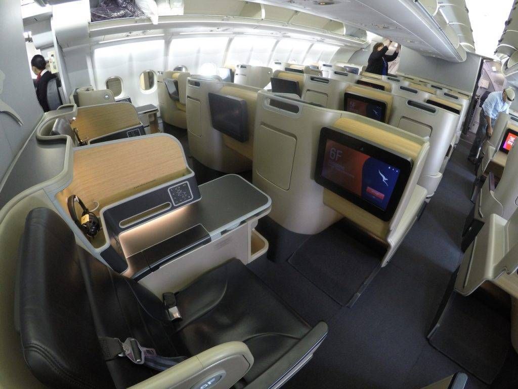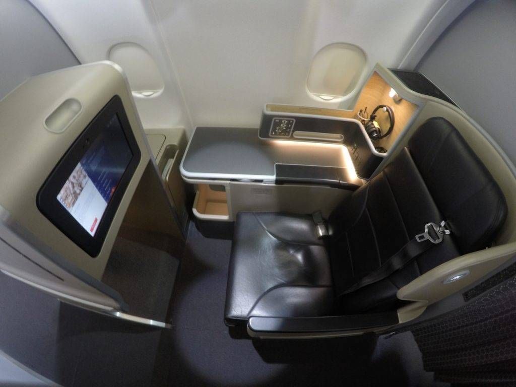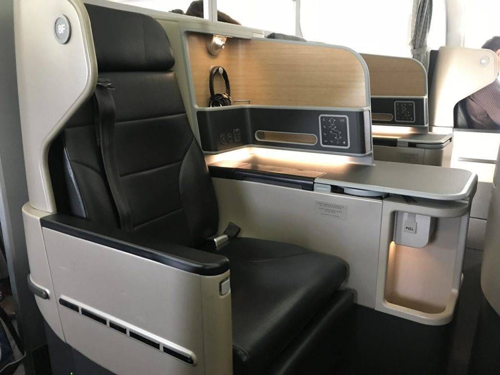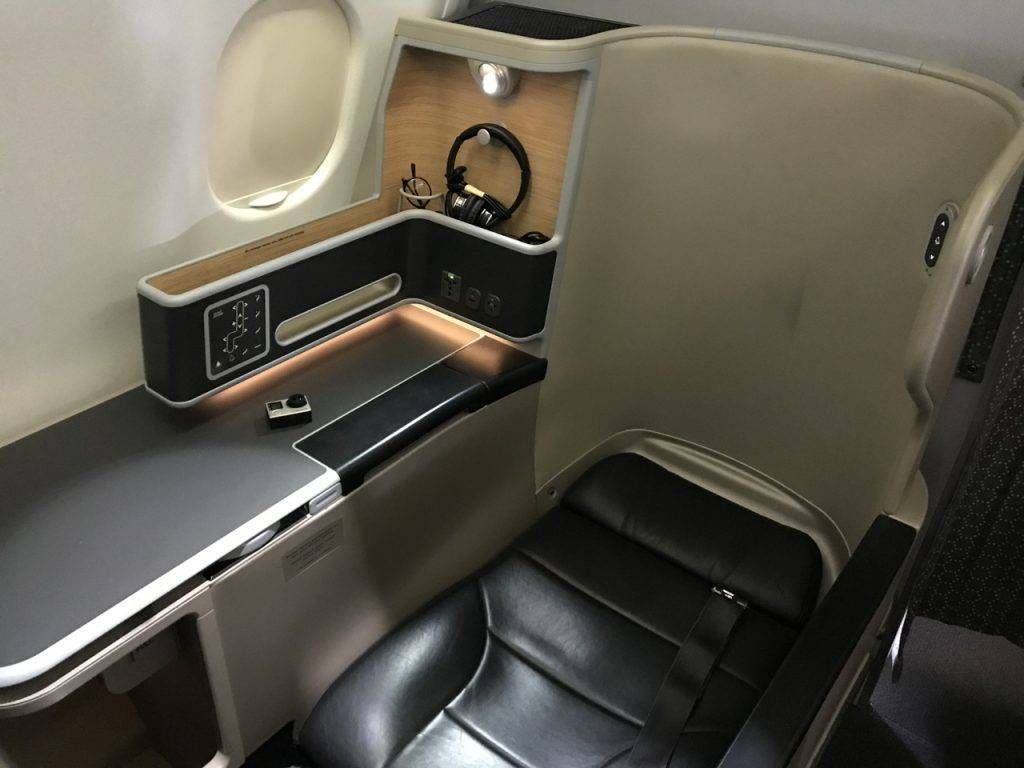 A business é divida em 2 seções como vocês podem ver no mapa de assentos abaixo. Optei por sentar no 7K, já que o assento é mega privado e fica na “mini-cabin”.
