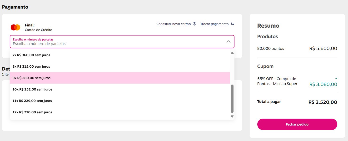 Desconto de uso único, aplicado diretamente na conveniência Compra de Pontos para você.