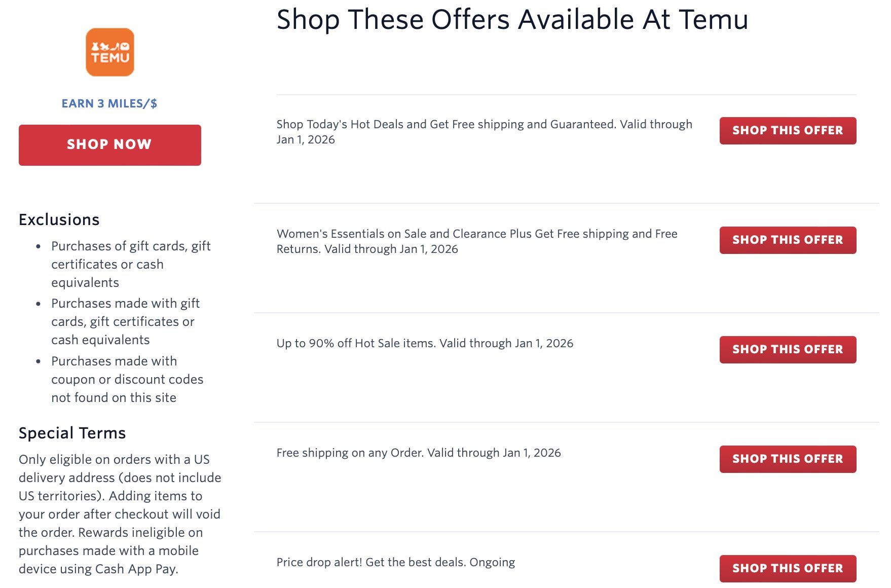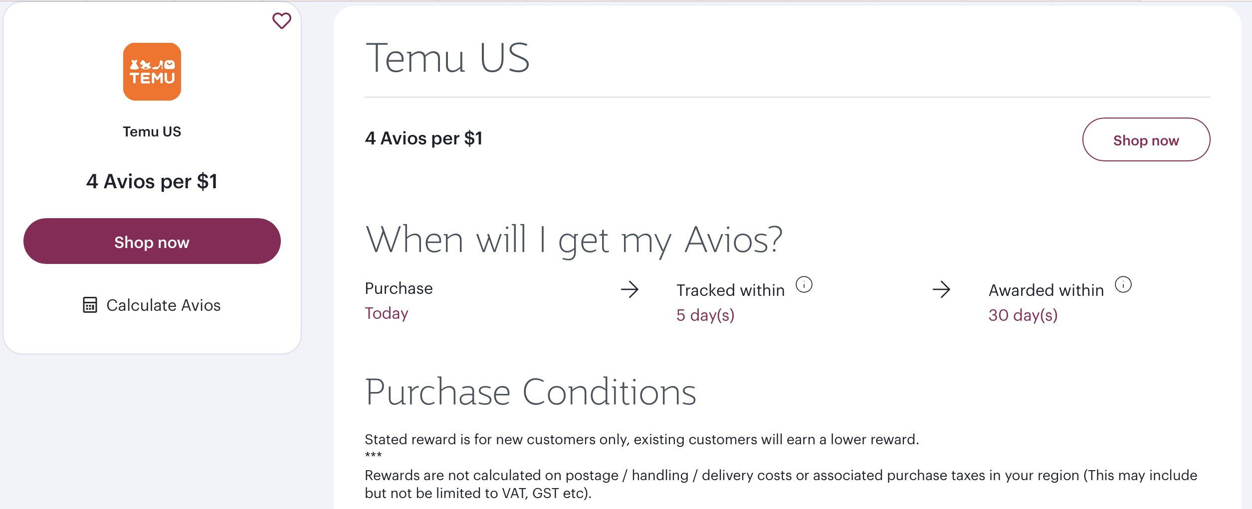O Privilege Club é programa de fidelidade da companhia aérea Qatar Airways. Através dele, é possível acumular 4 Avios a cada 1 dólar gasto. Apesar da parceria indicar o site Temu dos Estados Unidos, ao clicar em “Shop now”, o redirecionamento acontece normalmente para a versão do Brasil.