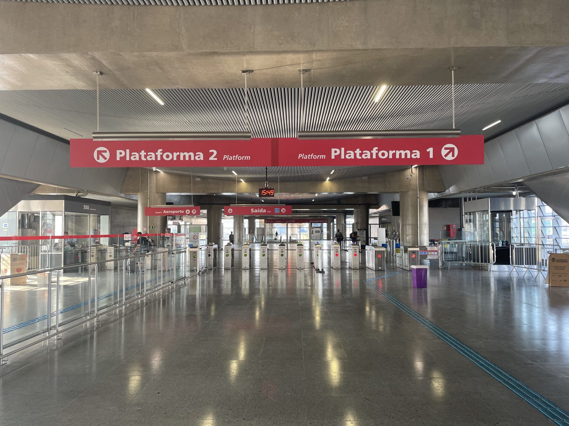 No trajeto contrário, você deve seguir basicamente os mesmos passos, só que em ordem invertida. Tenha em mente que é possível adquirir o seu bilhete para o trem diretamente na bilheteria localizada na Estação Aeroporto-Guarulhos ou através de um aplicativo chamado TOP [disponível para Android e iOS], que permite a sua liberação nas catracas – pelo mesmo valor que o bilhete físico – através de um QR Code.