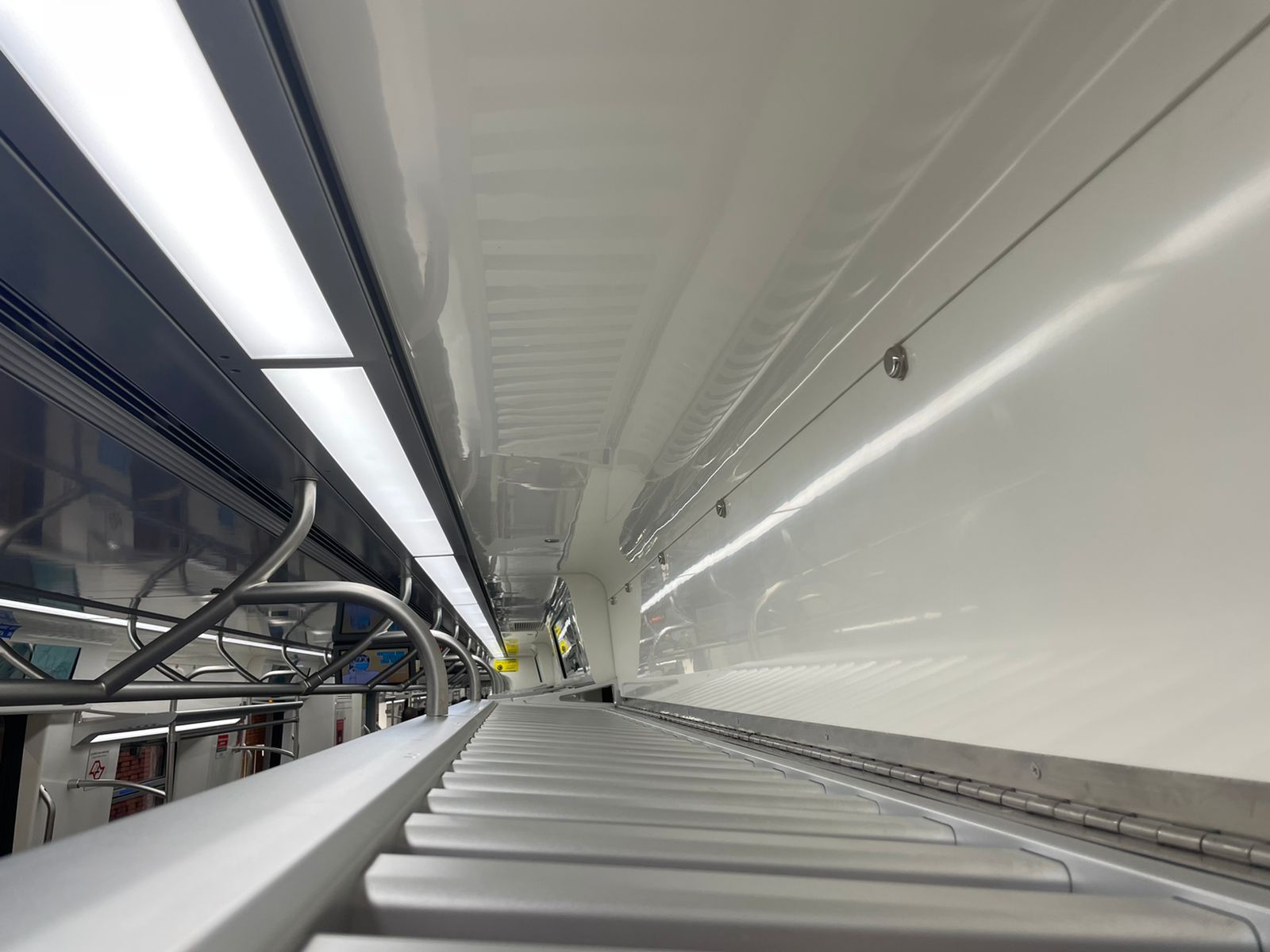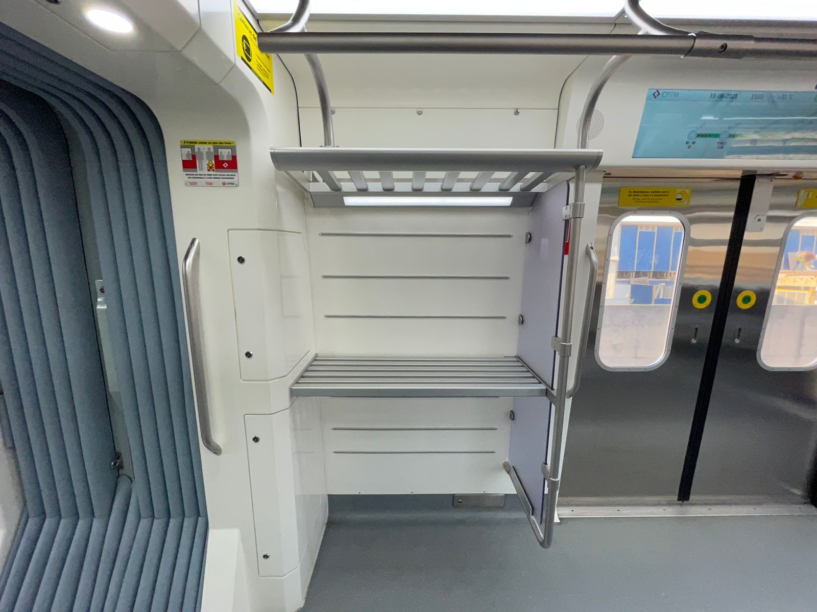 A composição possui oito vagões que contam com bagageiros disponíveis para que você possa acomodar as suas malas. O último trem com essa configuração exclusiva para a operação da linha foi entregue no início do ano passado.