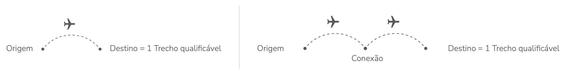 Importante! Mesmo que o voo tenha conexões entre a origem e destino final é contabilizado apenas 1 trecho qualificável.