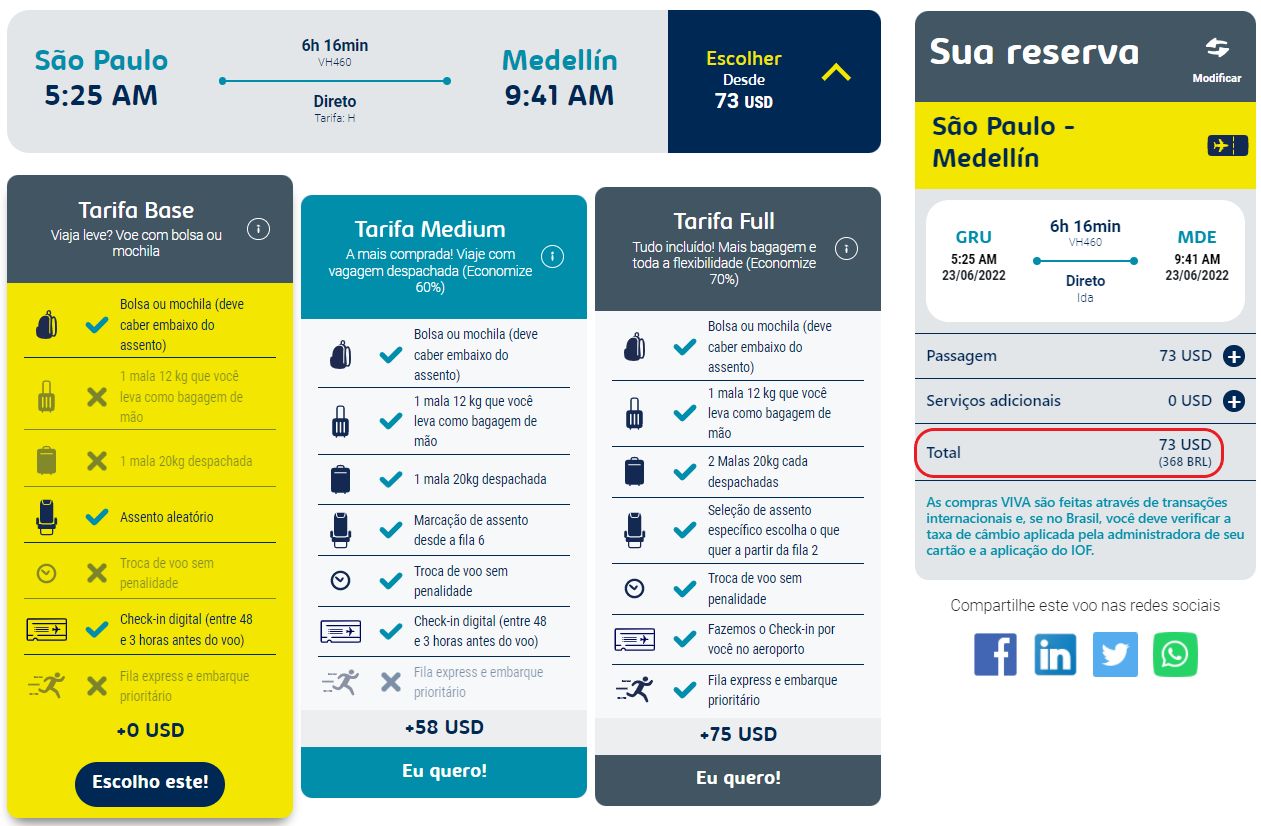 Atenção: assim como outras companhias de baixo custo, Flybondi, SKY Airline e JetSMART, por exemplo, a Viva Air Colombia cobra pelo despacho de bagagem, marcação de assento e bagagem de mão. Portanto leve em consideração na hora de escolher voar com a companhia.