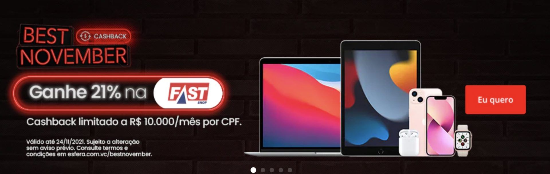 Mas esta conta pode ficar ainda melhor se você comprar pelo portal da Esfera e receber 21% de cashback – que é limitado a R$5.000 por dia ou R$10.000/mês por CPF.