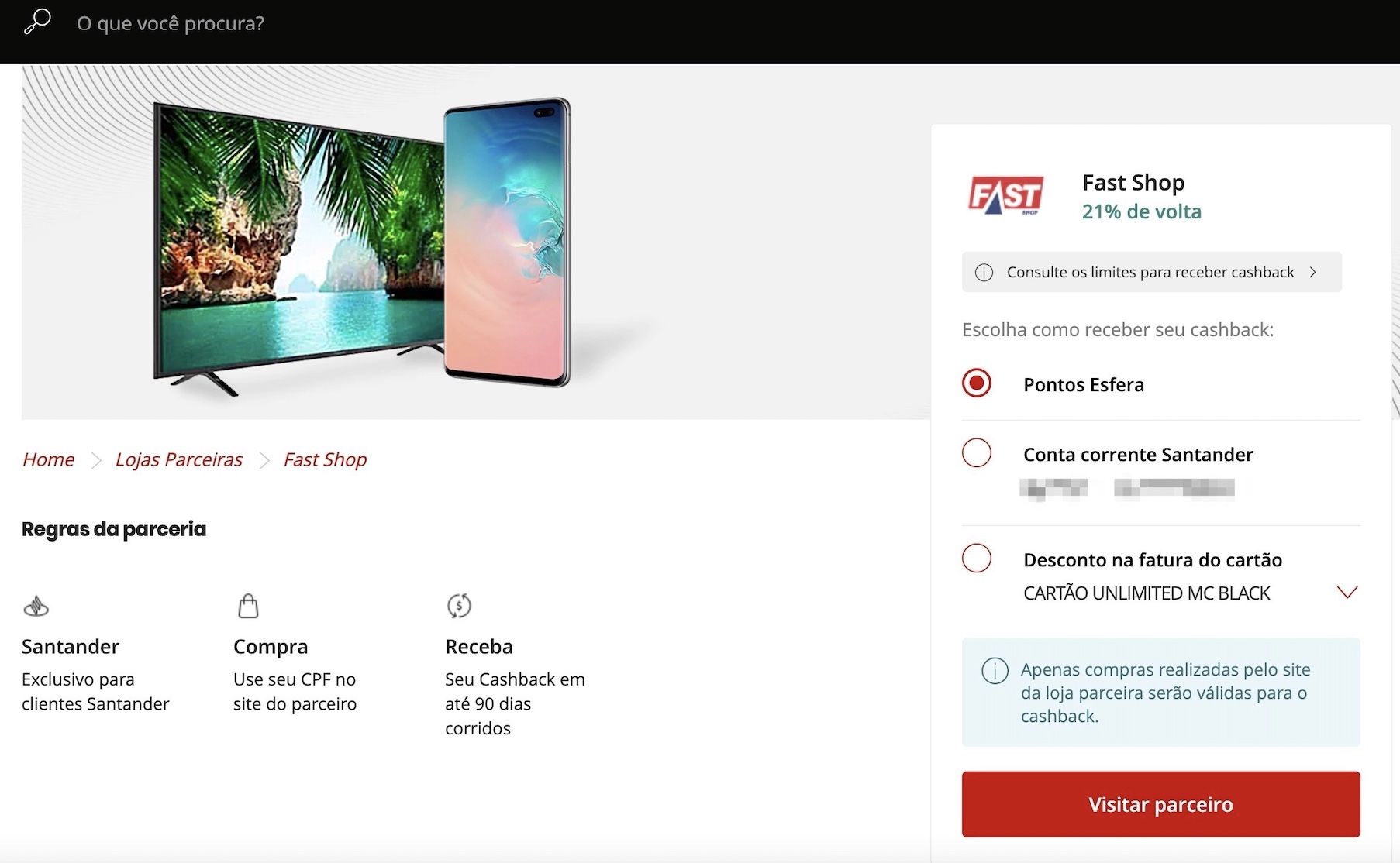 No meu caso que sou correntista e tenho cartões Santander vou poder escolher entre 3 modalidades disponíveis de cashback: