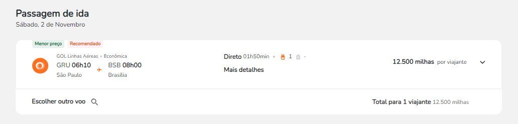 Veja abaixo a simulação de um trecho que realizamos para você resgatar com as milhas acumuladas nesta compra: