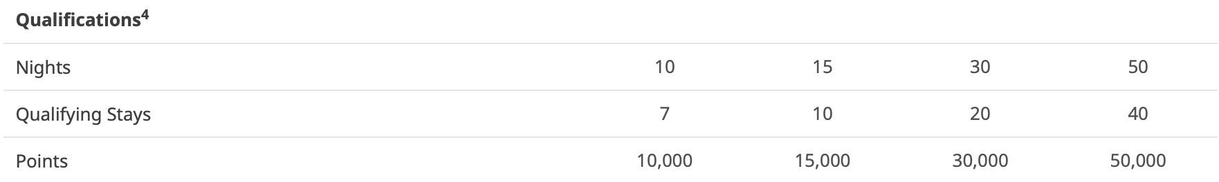O mais curioso que é preciso 50(!) noites para conquistar a categoria Diamond Select (o que agora é possível através de poucos cliques). Veja a tabela com os requisitos de qualificação: